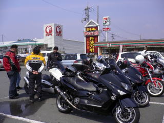 しばらくしてXR250に乗る、こうさんが到着です。次は別の場所に集合したBJさん達の到着待ちです。ここで隣のコンビニに異変です。僕が到着した時から爆音を響かせた○○族みたいなバイクが続々と集結してきました。その台数は100台以上の恐ろしい光景でした。