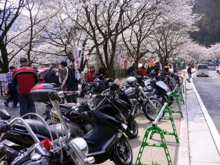 広い駐車場も一杯となり車道にもバイクがあふれてました。