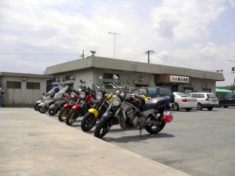 手前のスポーツバイク4台は奈良ナンバーの別グループの方々です。彼らも亀八目当てに走ってきたようでした。私たちは…