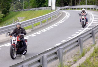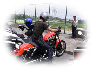 もしかすると地元のnori君も仕事の合間に来れるかもしれないので、約束の時間まで待ちました。この時間を利用してさかなさんがハーレーにプチ試乗です。実は信州でお会いした時乗って見るかとお誘いしましたが、あの時は女房の手前遠慮したような気がしていました。2度に渡るお誘いにさかなさんも試乗タイムです。