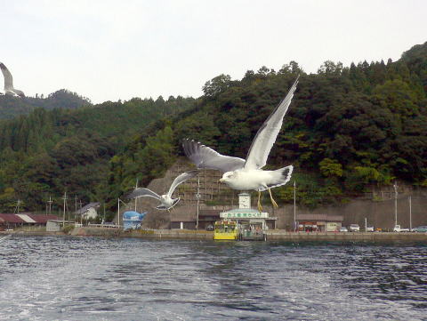 以前乗った、松島の遊覧船の様に出航と同時にカモメが餌を求めて群がってきます。