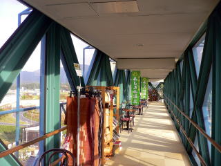 ここの温泉は高台にあり、空中廊下(?)を渡ります