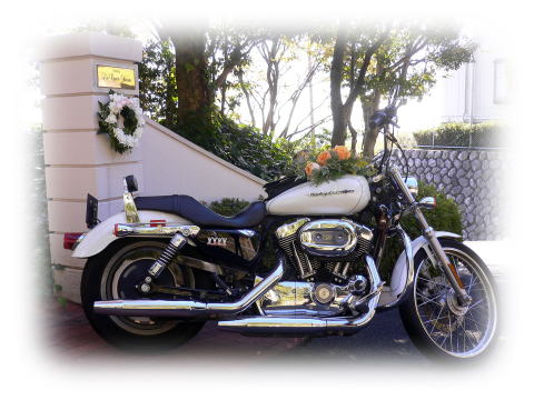 ホワイトカラーのハーレーが、いい雰囲気です