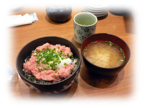 玉子と一緒に食べるネギトロ丼は新鮮な食感で、これも美味しかった