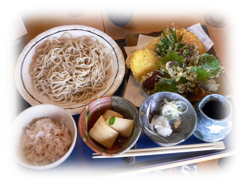打ちたてのそば・近くで採れた山菜の天ぷら・○○ご飯…
