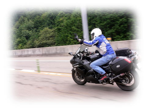 借り物(?)バイクで、ちょこっと爆走中の ナベさん