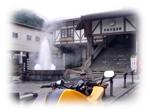 ここからはさらに山間部を走るので雨も降っていないのにカッパを着て、グリップヒータースイッチON