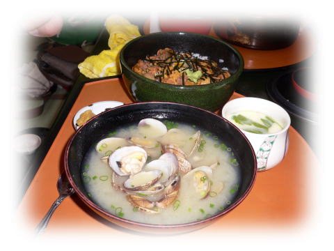 このお店のおすすめで、大きな貝汁と茶碗蒸しが付いています
