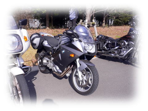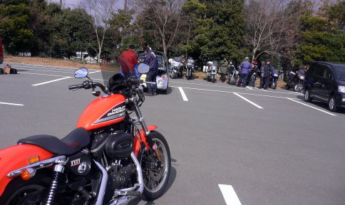 (さすがにハーレーを並べる度胸はなく、離れた所に駐車)