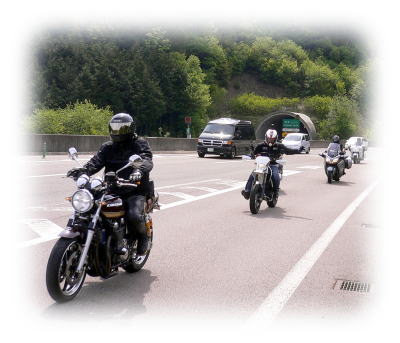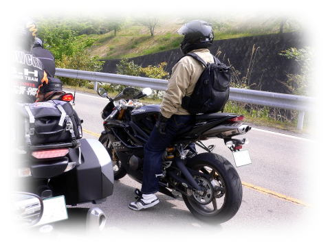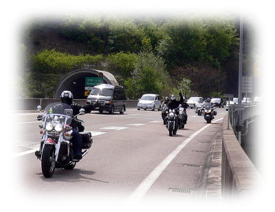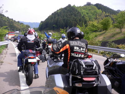 先頭を走らせてもらいましたが、ミラー越しに見ると迫力満点のバイク集団
