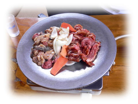 焼肉と言っても網でなく、特製鉄板(?)で焼いて食べます