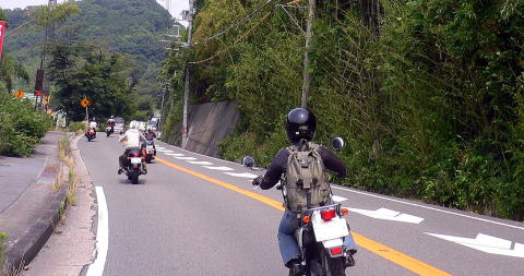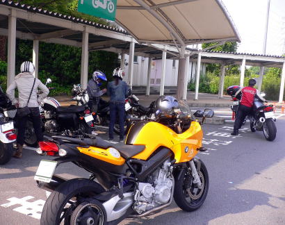 停車中のバイクの左から到着した順番です(僕はまさかのブービー)