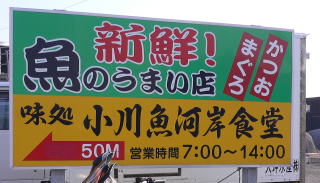 静岡県との県境でCobaさんとお別れし、小川港に昼食を食べに行きました。このお店はタケ君のブログで紹介されていたお店です。