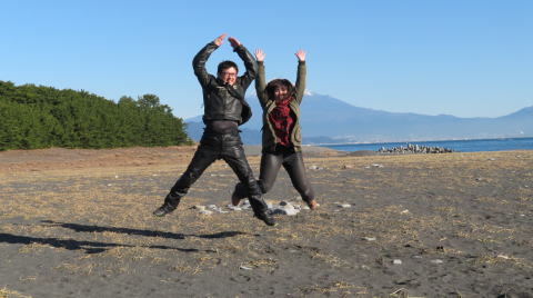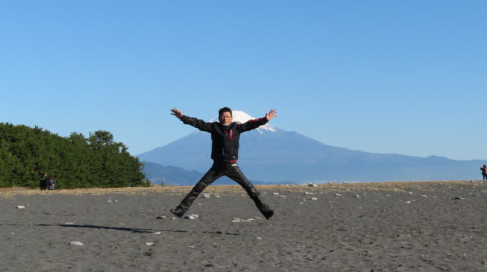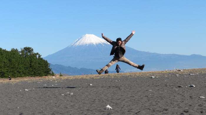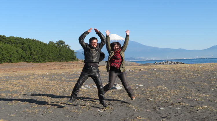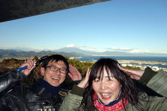 富士山ポーズする 新婚さん