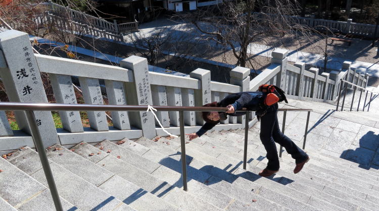 わけの分からないスタイルで階段を登る? はっちさん