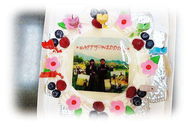 ケーキの中央には二人の記念ショットがプリントされてましたが、素材はチョコなので遠慮なく食べちゃいました