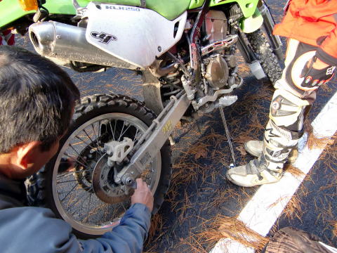 バイクは中島君持参のスペシャル・スタンドで保持