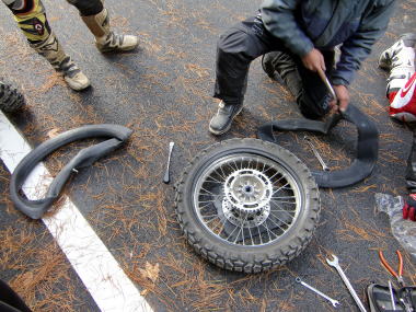 最後の林道を走り終え、後続車を待っていましたが今度はガス欠トラブル。