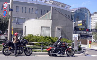 次のお店に移動です。私の前には四国チームが走りました。前を走っているカブちゃんは私のバイクと同じヨシムラのマフラーが装着されていました。後ろからの音はやはり心地よい(?)音で、やはり中年(おっさん)うけするサウンドなんでしょうかね?