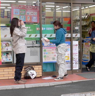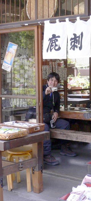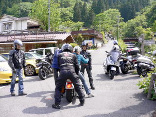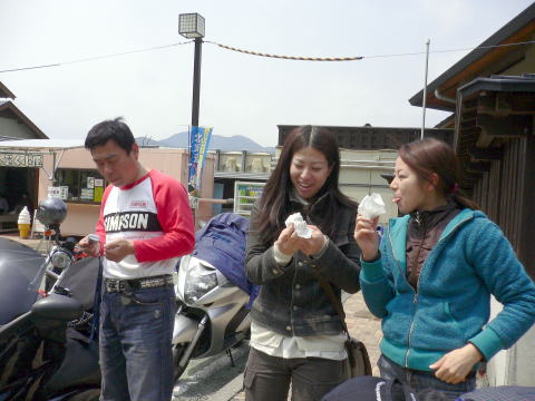峠を降りたところで休憩です。先ほど食べたばかりなのにちゃっかりとbunさんが買ってきた大福に群がる女性陣…