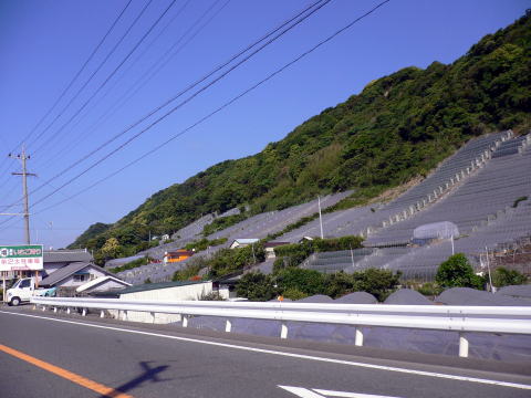 ここは石垣いちごのメッカで、シーズンにはお店の呼び込みの若い女性が手を振っていて、退屈しないロードです。