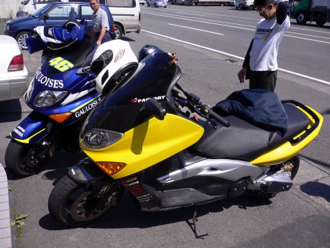 地元の彼らは早朝にちょこっと走り倒し、その後わざわざ立ち寄ってくれました。お二人さんのTMAXは綺麗に乗られているようでピカピカでした。最近乗りっぱなしの僕のバイクとは大違いです。