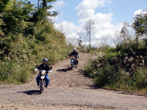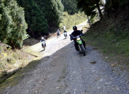 林道を疾走する、5台のオフ車
