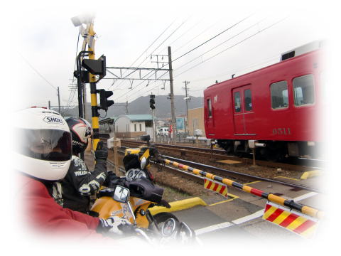 出発してすぐの踏み切りですが…