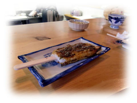 昼食前なのに、五平餅にチャレンジ