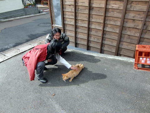途中で見つけた猫をいたぶる、ネコラーのお二人さん