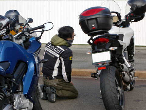 まずはベストポジションにバイクを停めます