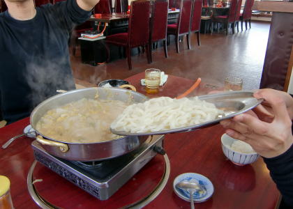 最後に茹でたての、うどんを投入!