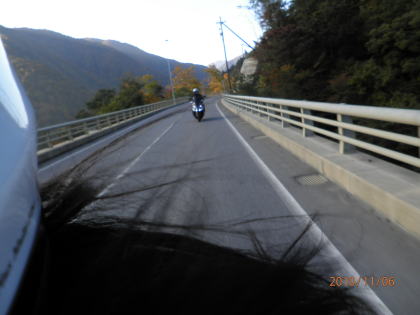 ここは揖斐川沿いの狭いウネウネの連続する道路。
