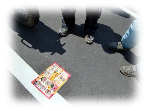 なぜかお店の外で食べる物を思案している、不思議な集団