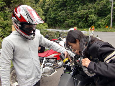 思いのほか林道内で遊びすぎたので、ほとんどの方がガソリンのピンチ状態。