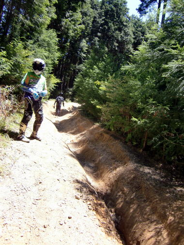 ただ、ここは恐怖のV字谷になっていて、油断するとバイクがはまってしまいます。