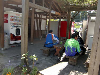 一度、道の駅に戻りベンチでの食事です