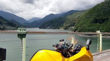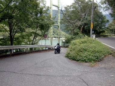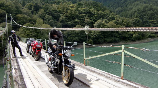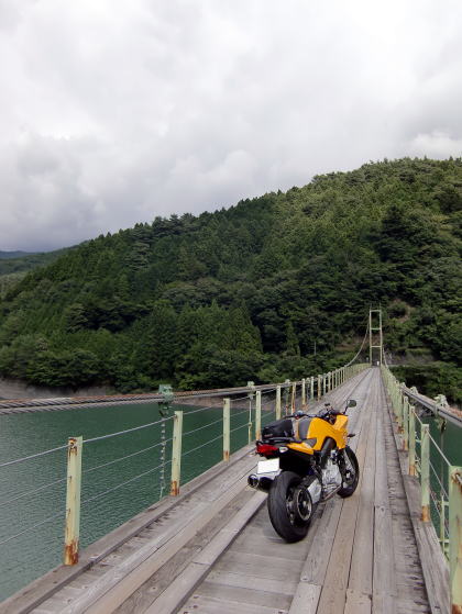 大井川、井川ダムにかかる、車で渡れる吊橋で全長258m