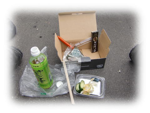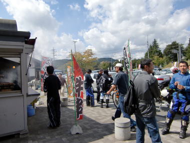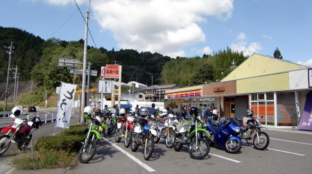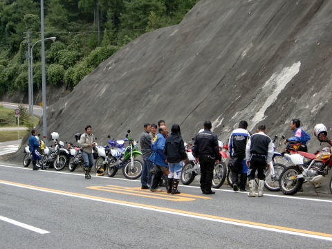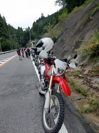 2本目の林道を走り終えた所で道路上での食事タイム。