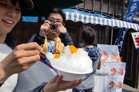 横丁を出た所で、かき氷2杯目にチャレンジの ゆかりん&bunさん