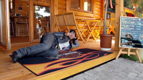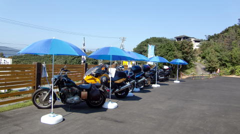 バイクの為にパラソルを移動し日陰をつくる、女性ならではの細かい気配りがありました。
