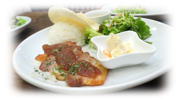 僕が食したBランチは、どのタイミングで食べるのか悩む煎餅つきの豚肉ランチ