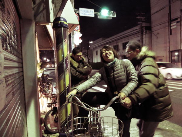 雪が降ってるのにルンルンな加奈子ちゃんと、不安感モリモリな前田君と三人で出発!